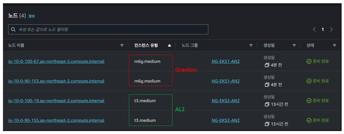 그럼 실제 EKS 에 Image 를 배포하여 아키텍처 별로 잘 적용이 되는 지 확인해보겠습니다.