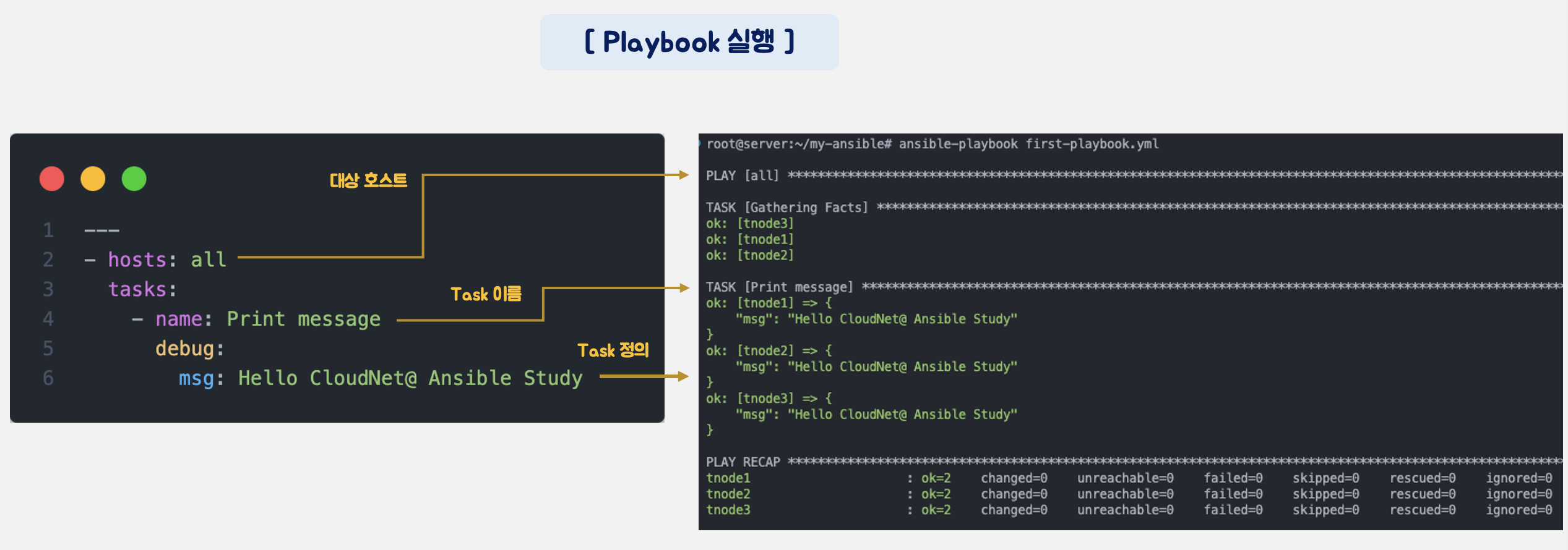 플레이북은 앤서블을 통해 수행할 작업 정의 파일