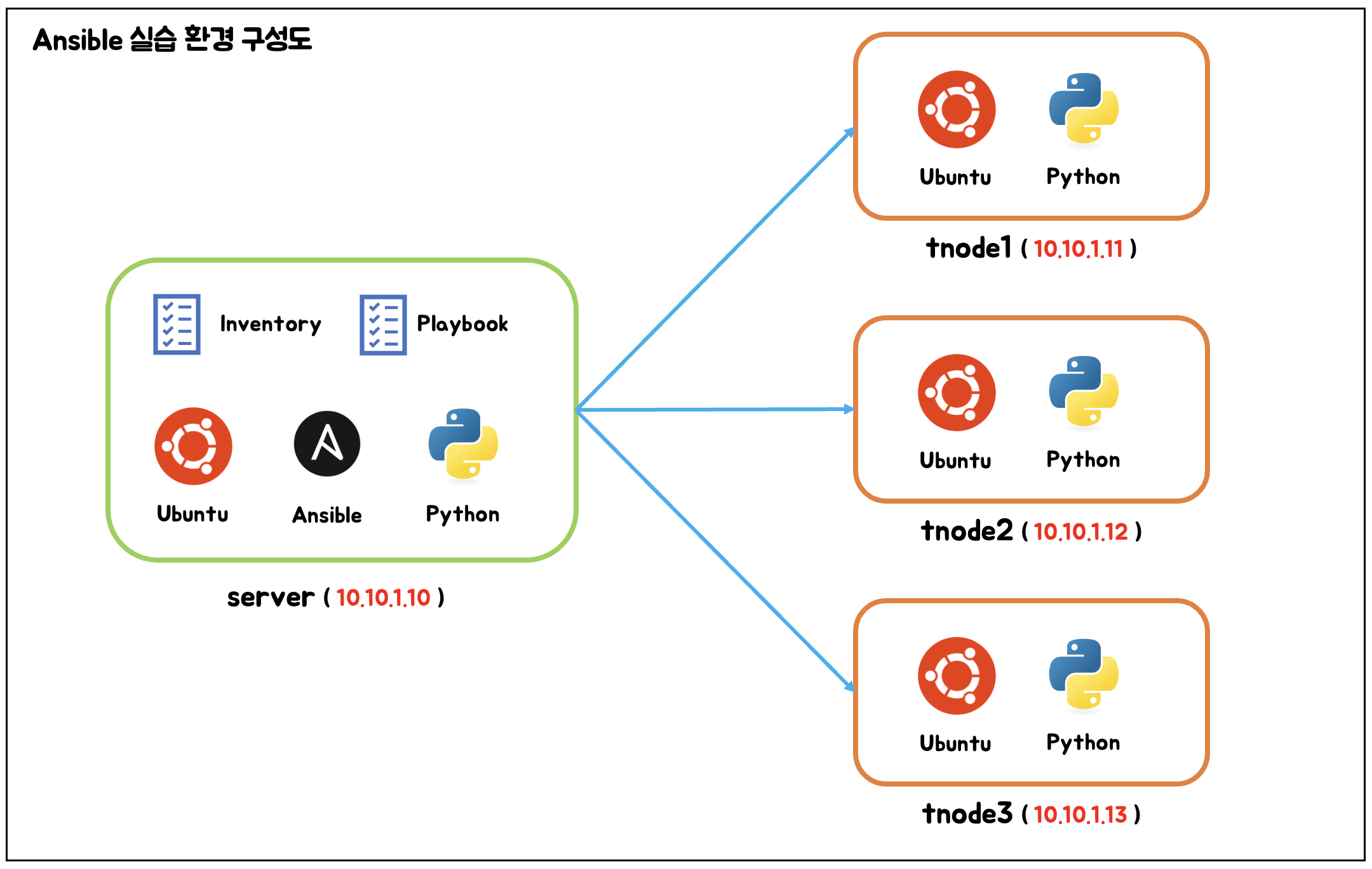 Ansible 을 사용하기 위한 Ansible, Python 은 이미 설치된 상태입니다.