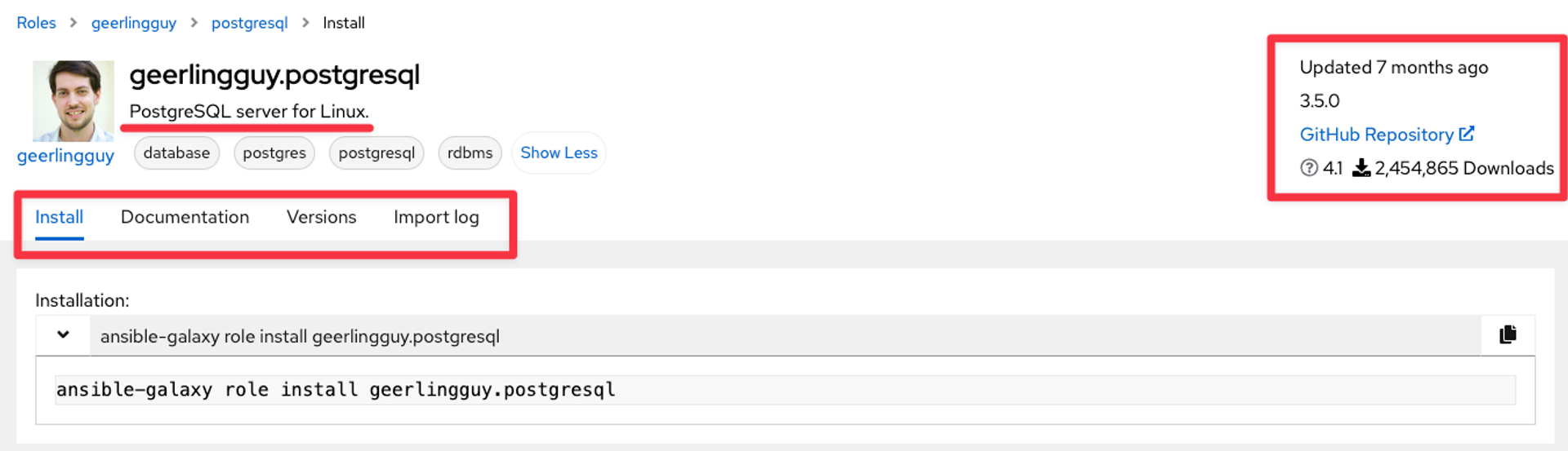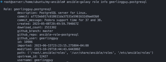 ansible-galaxy role info geerlingguy.postgresql