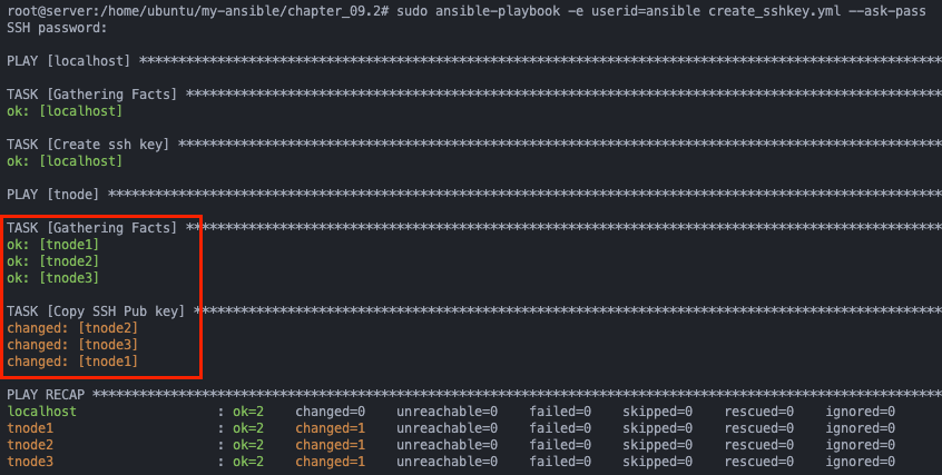 sudo ansible-playbook -e userid=ansible create_sshkey.yml --ask-pass