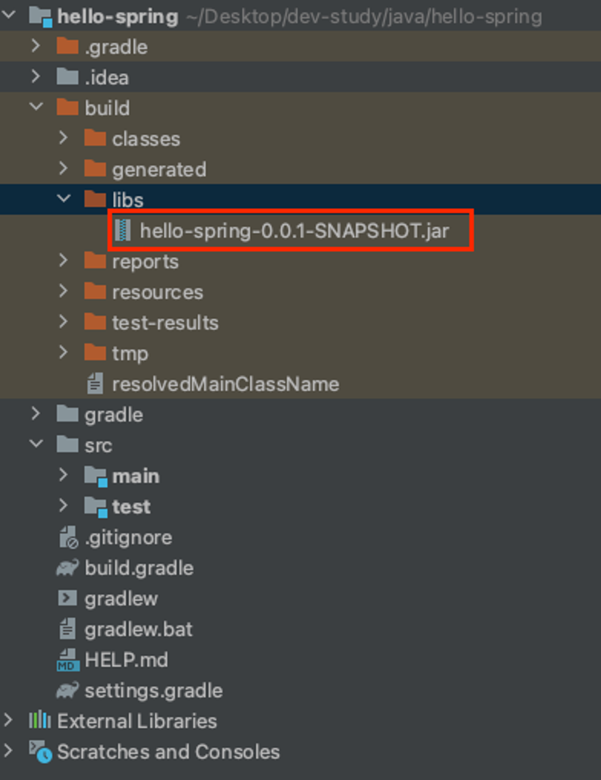 - Spring Boot 2.5 version 이상부터 Gradle 빌드 시 아래와 같은 명명 규칙으로 jar 파일이 2개 생성됩니다.