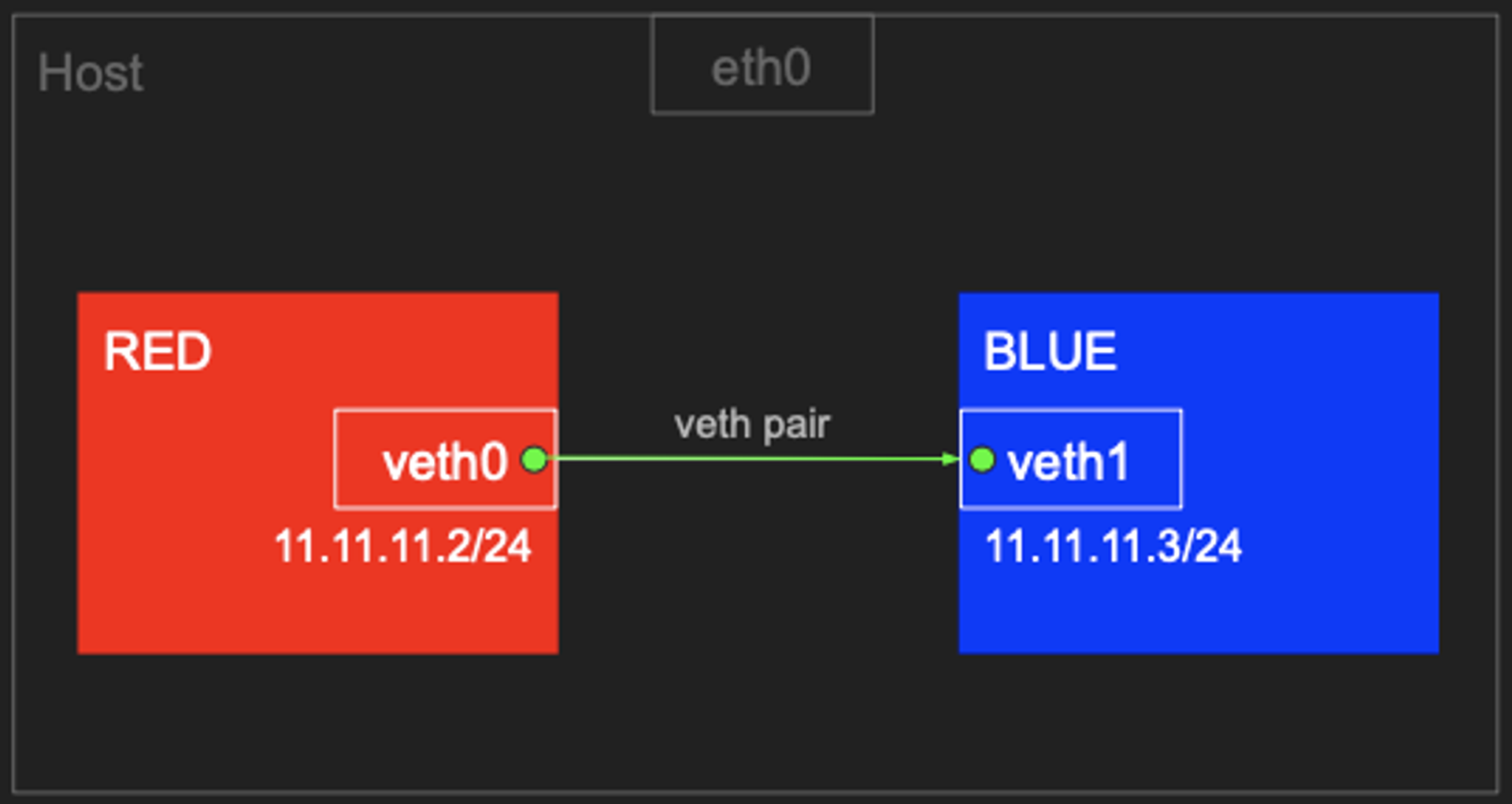 ip netns exec RED ip addr add 11.11.11.2/24 dev veth0