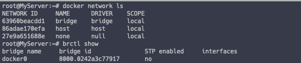 | 특징 | 도커 컨테이너들이 상호 통신은 물론, 컨테이너와 호스트 간 통신 가능 컨테이너 기본 IP 대역은 172.16.0.0/16 |