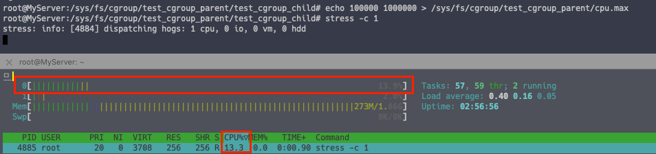 echo 1000000 1000000 > /sys/fs/cgroup/test_cgroup_parent/cpu.max