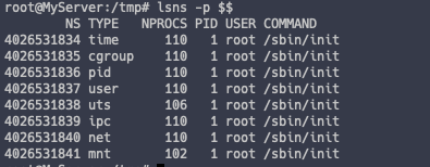 | NPROCS | 해당 네임스페이스에 속한 프로세스 개수 |