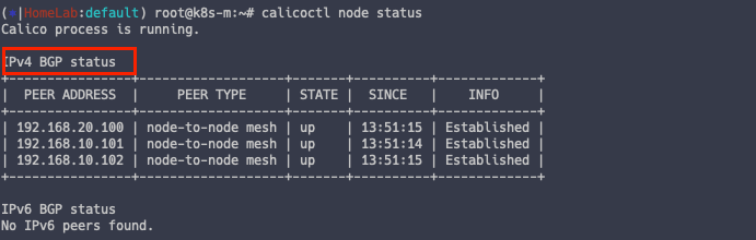 앞서 컴포넌트 설명에 나와있던 것처럼 Bird 가 BGP 를 사용하기 때문에, BGP 상태 정보라고 표시된 것을 알 수 있습니다.