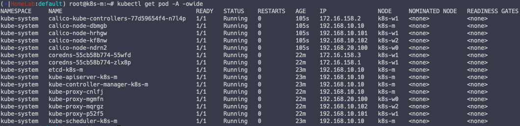 Calico CNI 설치 후, Node 상태와 Pod 가 정상적으로 동작하는 것을 알 수 있습니다.