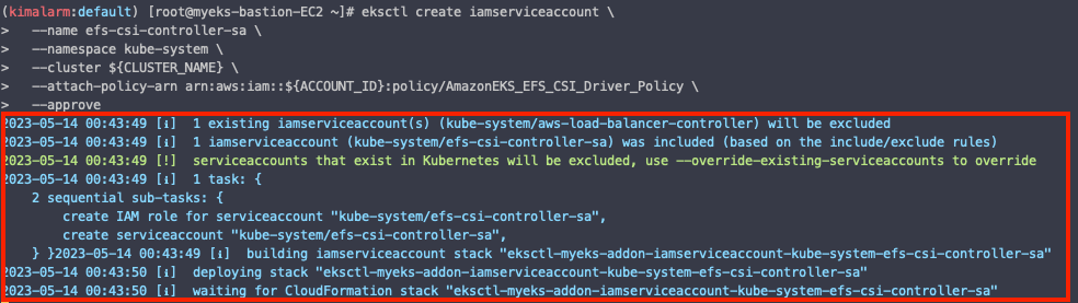 --attach-policy-arn arn:aws:iam::${ACCOUNT_ID}:policy/AmazonEKS_EFS_CSI_Driver_Policy \